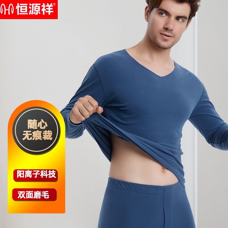 恒源祥秋衣秋裤男士随心裁青年修身保暖内衣薄款打底薄款内衣_38 175/100 宝蓝