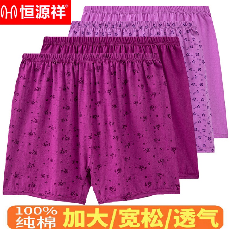 恒源祥女士妈妈内裤中老年平角碎花纯色加肥加大宽松中高腰安裤 XXXXL I组:浅紫碎花+浅紫+深紫+深紫碎花