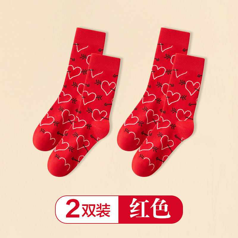 恒源祥红袜子结婚喜字一对男女士情侣袜本命年中筒棉袜属虎年_443 均码【情侣款男女各一双】本命年鸿运 【情侣款】红红火火