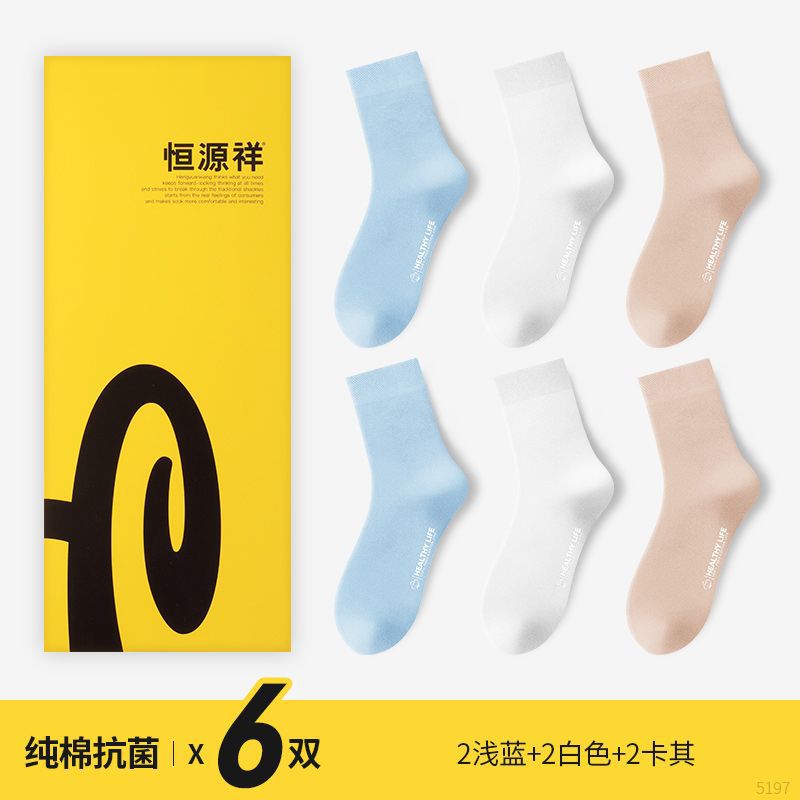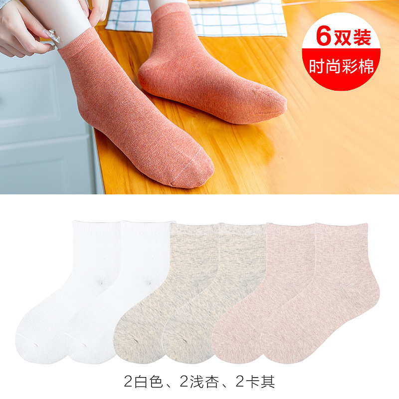恒源祥女士中筒袜纯棉秋季长袜吸汗透气棉袜棉简约时尚袜子女DB_392 均码【6双装】 2白色2浅杏2卡其