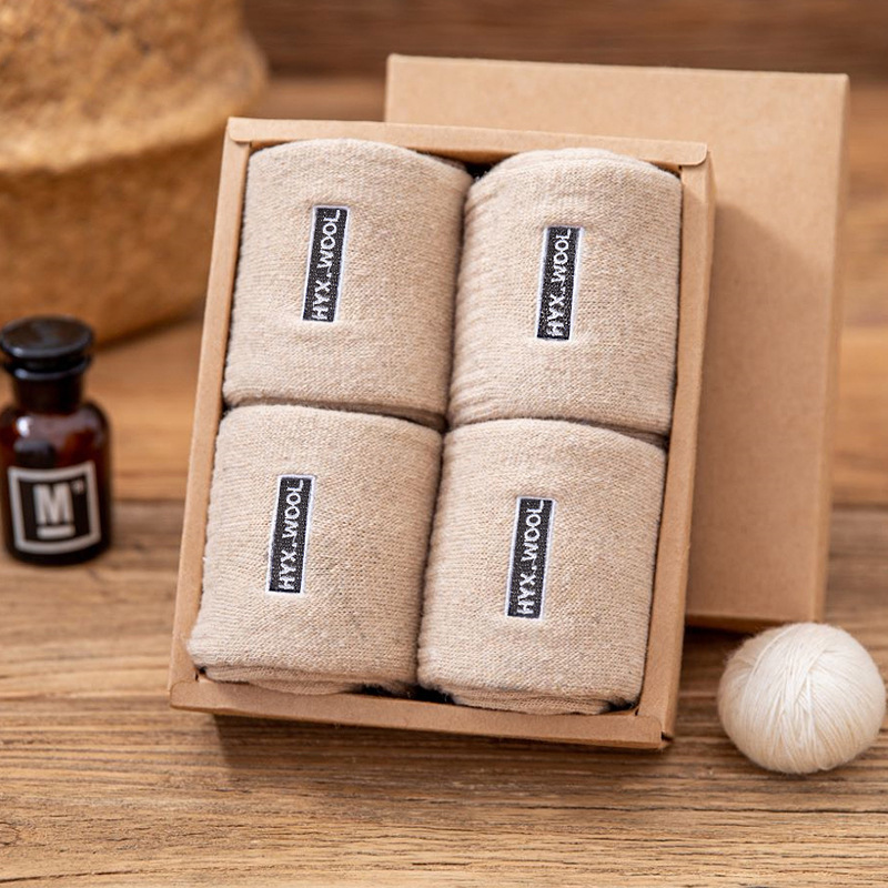 恒源祥加厚羊毛袜子男士秋冬季德绒发热防寒超厚中筒袜冬天保暖袜_554 均码【羊毛加厚毛圈发热】 【字母刺绣】4驼色