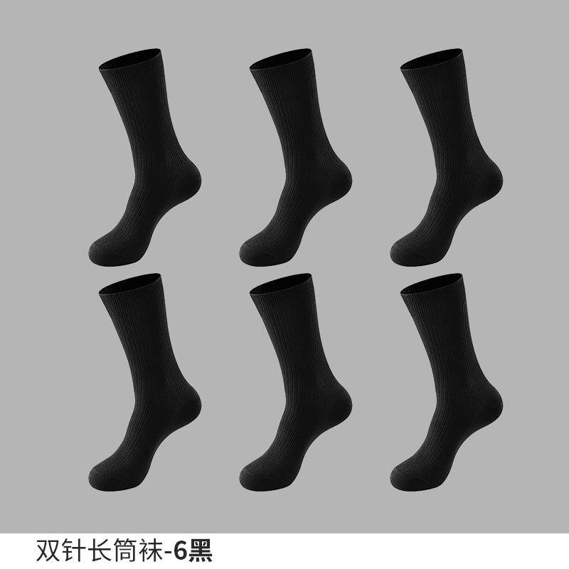 恒源祥袜子男高筒纯棉长袜透气纯色棉双针长筒加厚吸汗_358 均码 6黑色