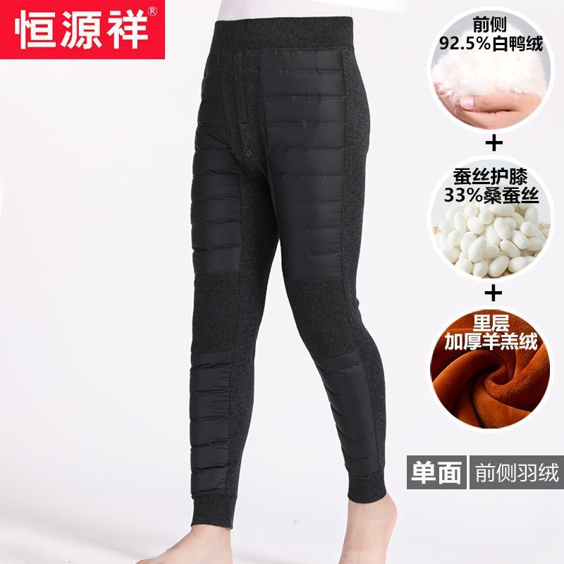 恒源祥羽绒裤男加绒加厚中老年人冬季保暖裤内穿棉裤东北绒裤爸爸 4XL 深灰(92.5%白鸭绒+蚕丝护膝)