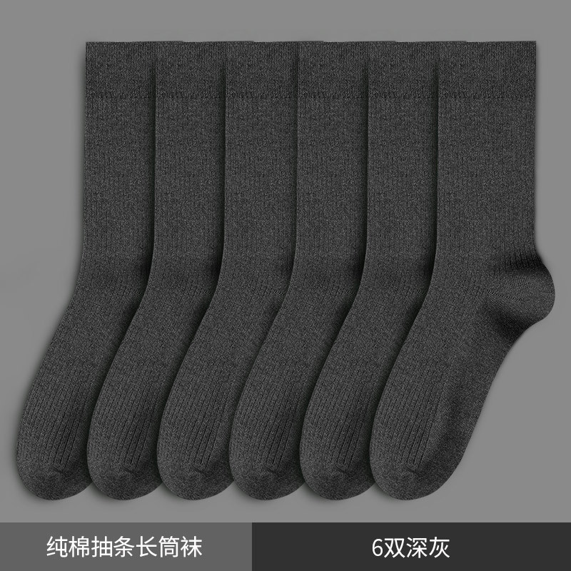 恒源祥袜子男士纯棉秋冬季加厚款长筒棉袜中筒高筒长袜_349 均码【纯棉高筒闪电发货】 纯棉抽条长筒袜【6深灰】共6双