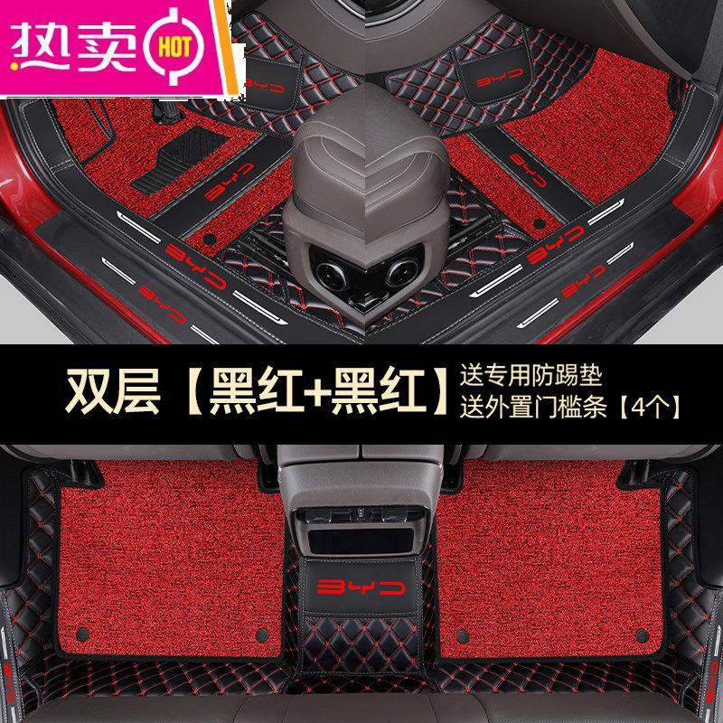 比亚迪f3汉ev宋pro唐e5e2秦plusdmi元s6速锐l3专用全包围汽车脚垫_217 【双层黑红+黑红】送*防踢垫*门槛条[4个]