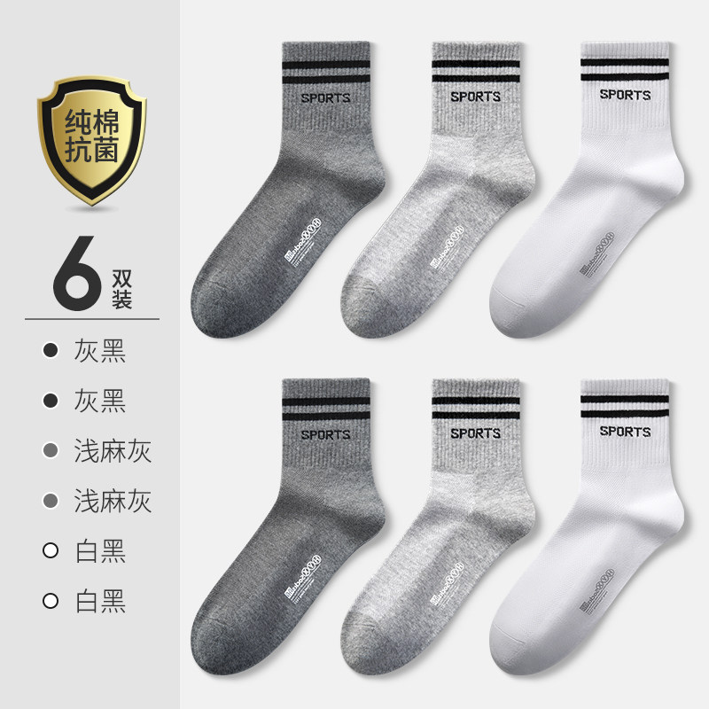 恒源祥男士长筒纯棉春夏男袜子中筒吸汗棉运动长袜秋季_637 纯棉抗菌运动中筒【38-44码】 2灰黑2浅灰2白