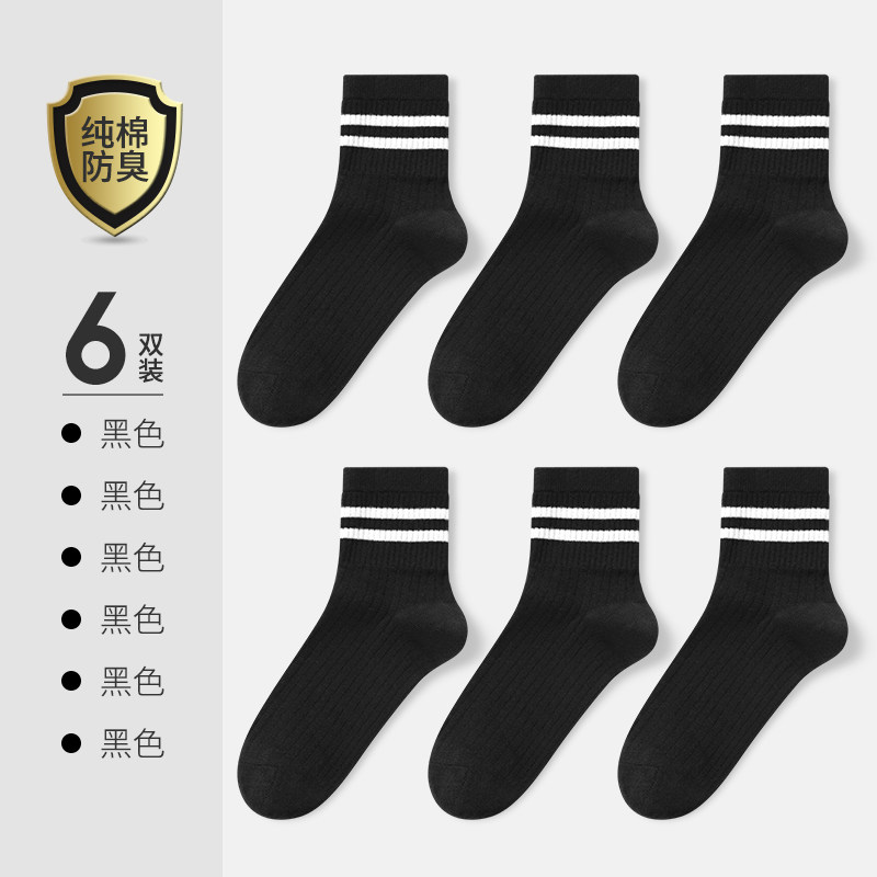 恒源祥袜子女中筒纯棉春夏季薄款日系纯色女袜秋潮袜四季棉_661 100%纯棉中筒女袜(35-39码) 双条纹-6黑