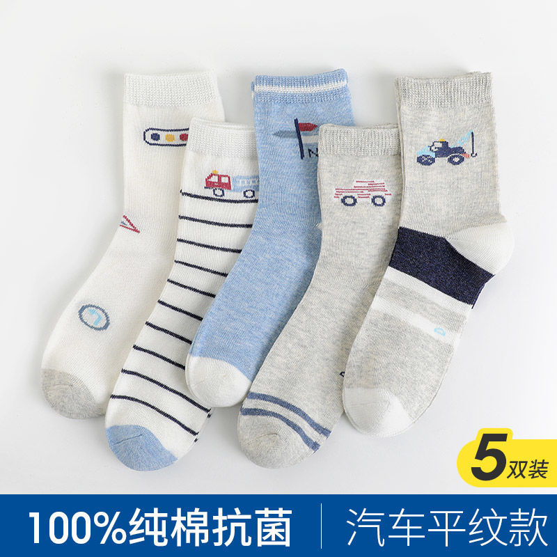 恒源祥儿童袜子纯棉男童宝宝中筒袜春秋款中大童小学生男孩棉袜_175 7-9岁(脚长18-20cm) 3910-1汽车平纹款