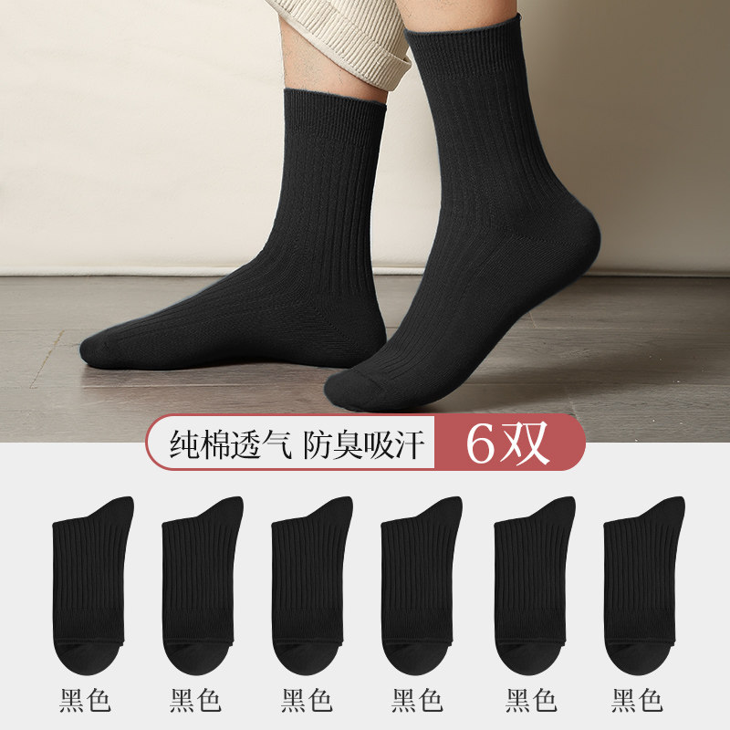 恒源祥袜子男士中筒春秋薄款长袜黑色男袜长筒男生夏季防臭全棉袜_668 均码【100%纯棉AAA抗菌】 【纯棉抗菌】黑色6双