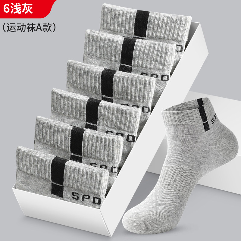 恒源祥袜子男纯棉吸汗防臭运动袜长短袜春夏季中筒全棉袜网眼男袜 1件-纯棉防臭男袜(38-44码) 平纹款-6浅灰