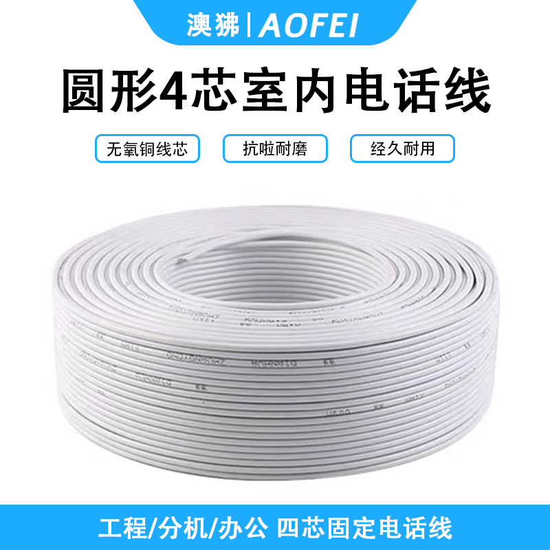 澳狒 电话线4芯圆形无氧铜工程家装语音电话线 座机/传真机电话延长线连接线 100米 1卷