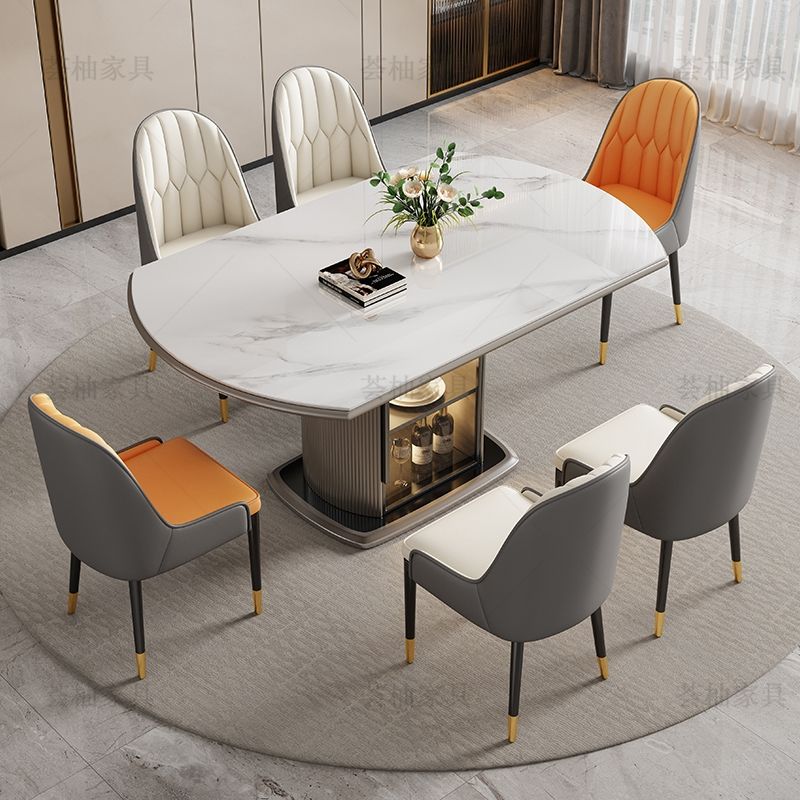 青木川 简约现代餐桌六人十人意式亮光岩板餐桌轻奢餐桌椅组合家用小户型一米五可伸缩折叠圆桌长方形饭桌子皮质金属家具 一桌6椅【1.5米长】 岩板纹理备注