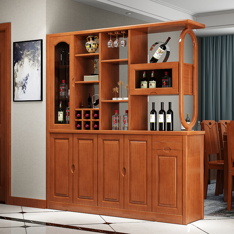 青木川实木酒柜鞋柜一体靠墙客厅家用入户进门口玄关隔断屏风柜双面高柜 五门海棠色【1.78米长】
