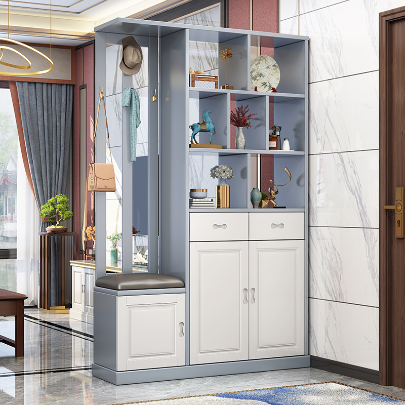 青木川 实木酒柜鞋柜一体靠墙小户型客厅进门口入户1.2米玄关隔断屏风柜装饰柜 简约现代 浅灰+白【1.2米长】