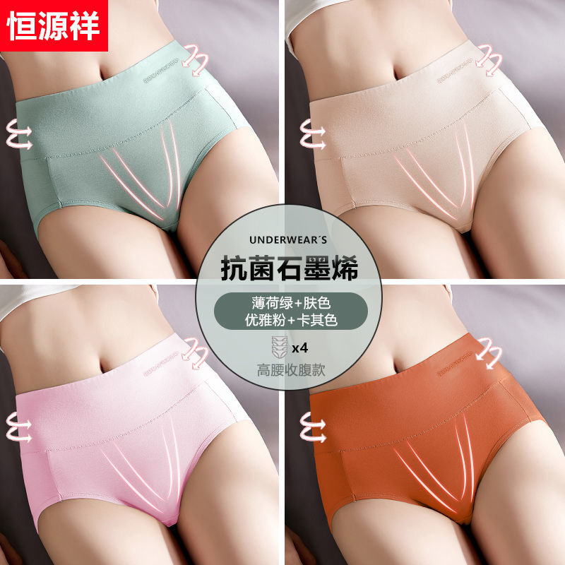 恒源祥内裤女纯棉高腰收腹中腰女士薄款石墨烯透气短裤全棉夏 165/L 可可+肤色+牛油果绿+优雅粉