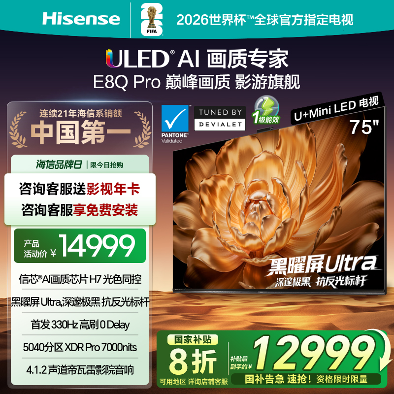 海信电视机E8Q Pro 75英寸 U+MiniLED 信芯H7黑曜屏Ultra以旧换新