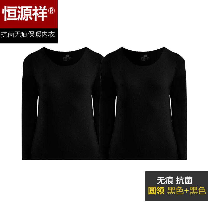 恒源祥女士秋衣无痕薄款单件上衣打底衫内穿保暖内衣女套装秋冬_470_302 180/XXL 女士无痕抗菌单件圆领(黑色+黑色)