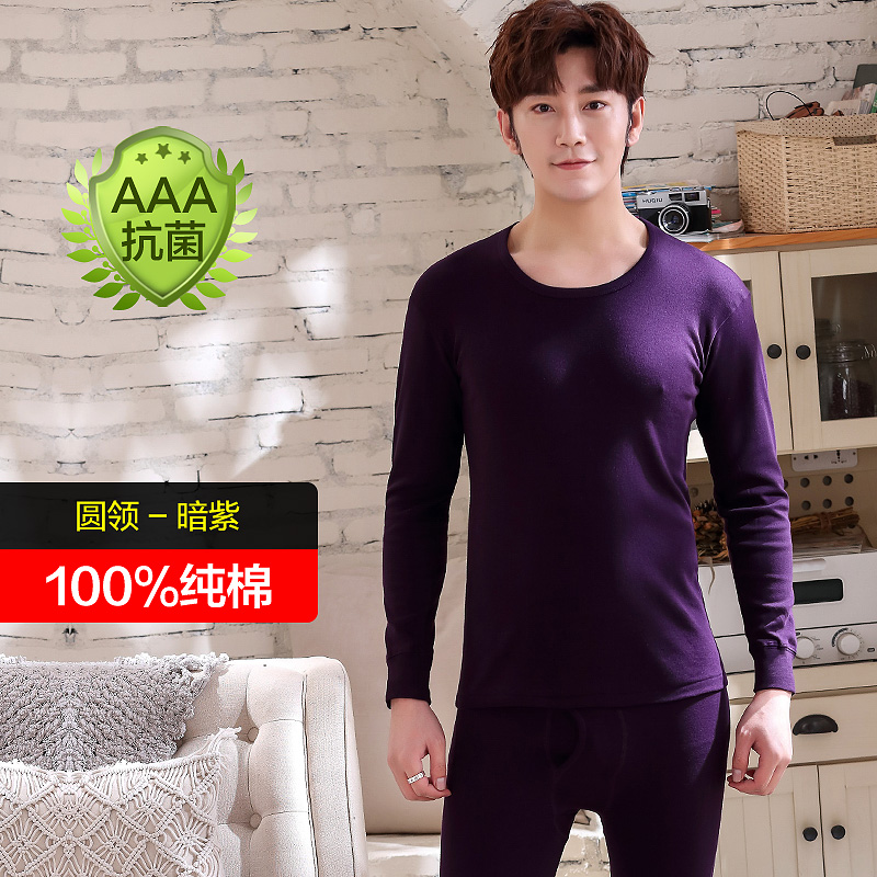 恒源祥纯棉男士秋衣秋裤套装青少年薄款打底保暖内衣冬季全棉毛衫_89_405 180(2XL) 抗菌圆领暗紫