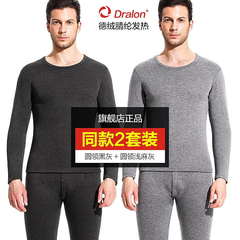 恒源祥保暖内衣男士加厚加绒套装德绒自发热冬季无痕打底秋衣秋裤_75_833 165/M【99天质保德国发热纤维】 圆领(黑灰+浅麻灰)