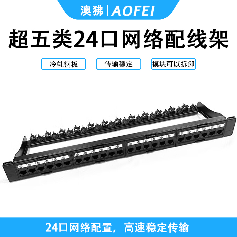 澳狒 网线配线架 CAT5E免打机架式机柜通用网络直通超五类24口配线架 升级款