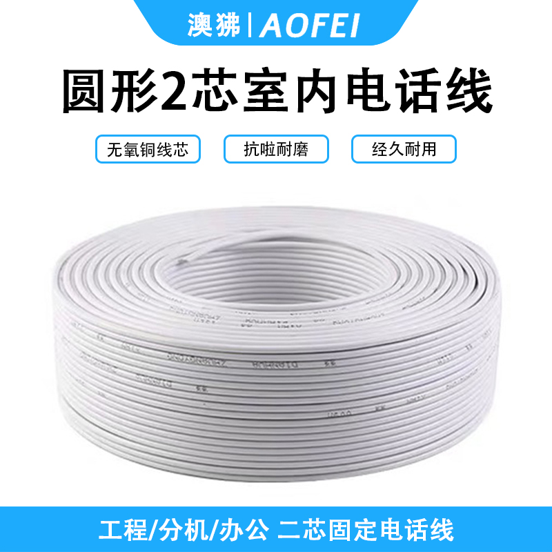 澳狒 电话线2芯圆形无氧铜工程家装语音电话线 座机/传真机电话延长线连接线 100米 1卷