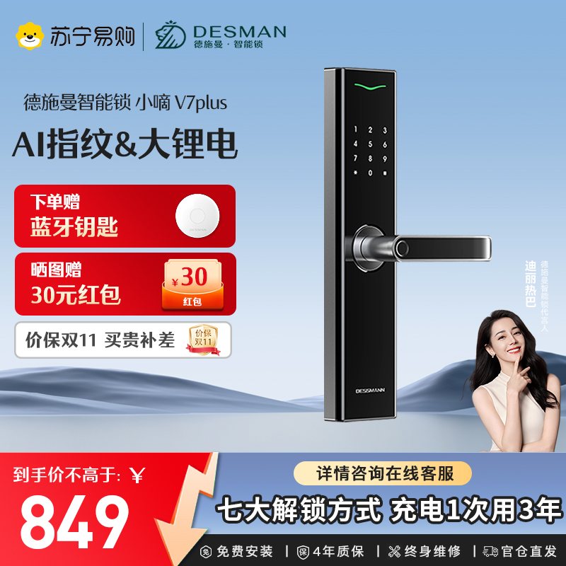 锁很好,性价比很高,加上**补贴价格更美丽了,**价700多,功能也很齐全,易操作,家里原先在官方店里买的锁突然不香了,到货很及时,第二天师傅就上门安装了,超快!总之很满意!