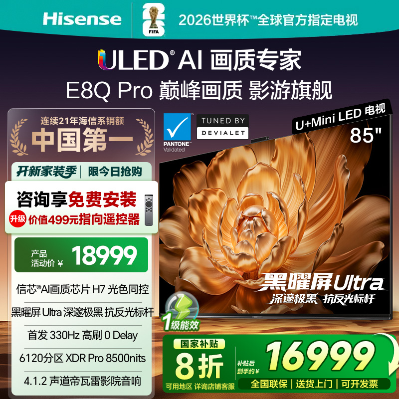 海信(Hisense)电视85英寸85E8Q Pro 信芯H7 U+MiniLED黑曜屏Ultra 330Hz高刷