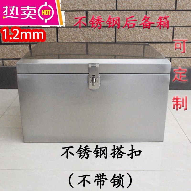 飞车侠精品摩托车不锈钢后备箱踏板电动车尾箱大号防水储物工具箱_612 不锈钢搭扣(不带锁)44*32*30中款(开孔)底板加厚
