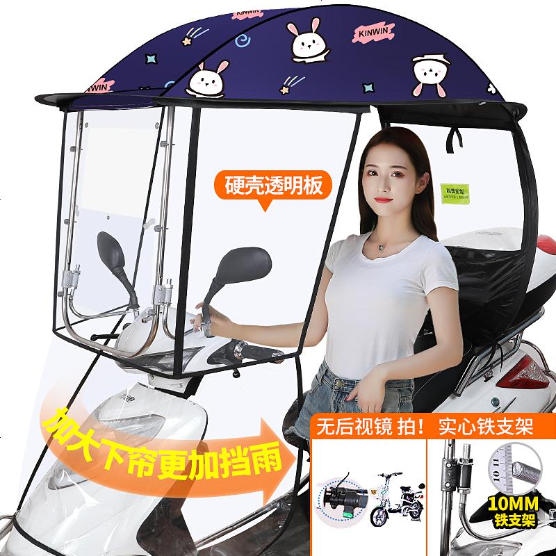 电动摩托车挡雨棚新款电瓶车挡风罩防雨加厚雨伞车棚遮阳伞雨篷蓬_756_745 【全遮光】【立体侧挡板磁铁开窗】藏青嘻哈兔+加大下帘