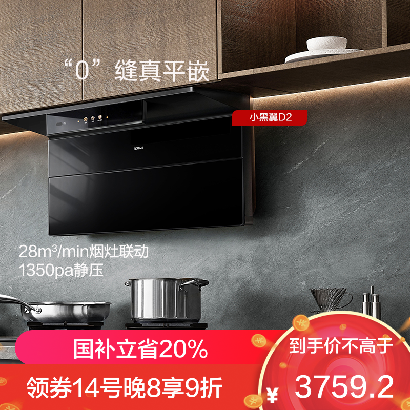 老板(Robam)[小黑翼D2]智能大吸力 超薄顶侧双吸抽油烟机 28立方大风量家用大吸力一级能效27A21-D2