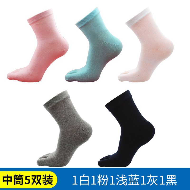 恒源祥五指袜女士纯棉薄款分趾袜子女防臭吸汗春秋全棉中筒袜秋冬_849 均码M(34-39码) 【中筒款】1黑1浅蓝1粉1灰1白