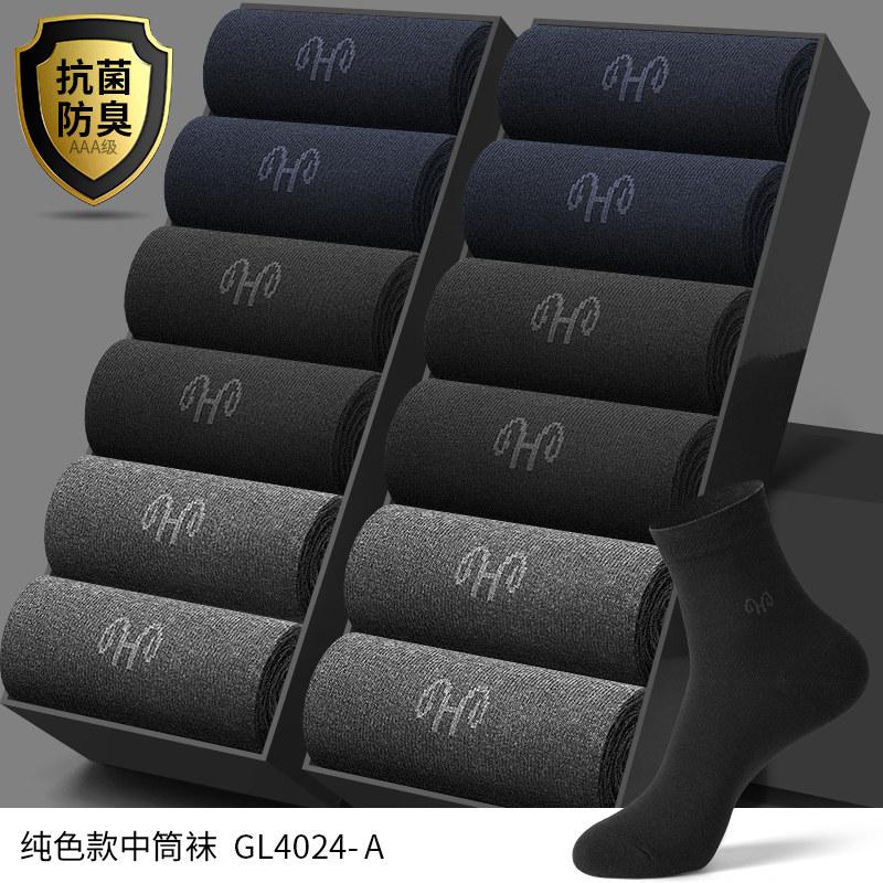 恒源祥纯棉男士袜子中筒防臭吸汗长袜男袜秋季黑色长筒全棉袜冬季_204_837 均码【100%纯棉抗菌防臭】 纯色抗菌【4024】黑色4深灰4藏青4
