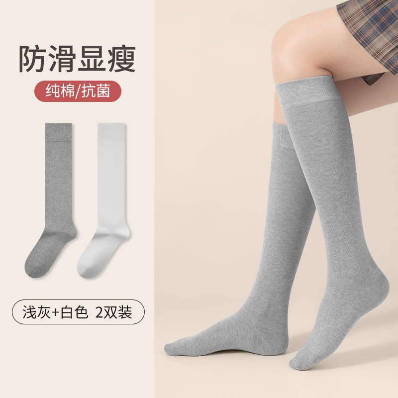 恒源祥袜子女高筒纯棉四季款小腿袜纯色简约女学生长袜潮_667 均码【35-39码】 【纯棉抗菌小腿袜】1浅灰1白