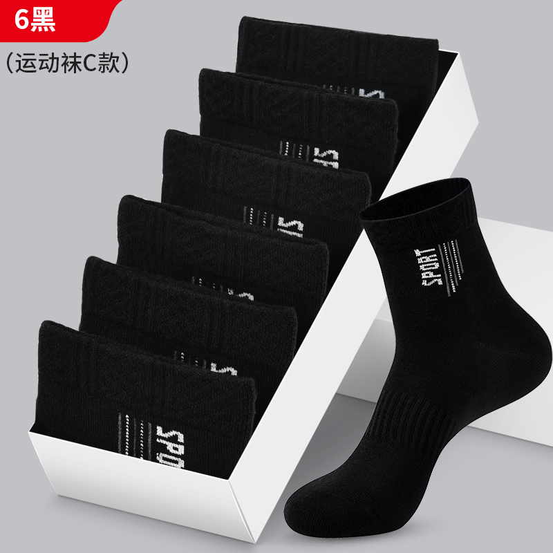 恒源祥袜子男纯棉吸汗防臭运动袜长短袜春夏季中筒全棉袜网眼男袜_1 纯棉防臭运动袜(38-44码) 运动袜C款-6黑