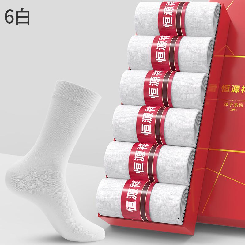 恒源祥袜子男士高筒秋冬季黑色商务长筒纯棉吸汗防臭中筒全棉男袜_404_246 2件12双-高筒男袜(38-44码) 四季款-6白