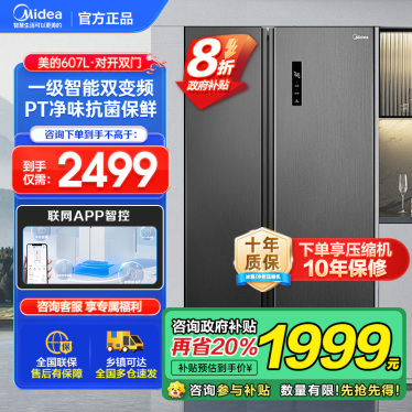 美的(Midea)607升对开门冰箱双变频一级能效家用超薄电冰箱智能净味无霜BCD-607WKPZM(E)大容量