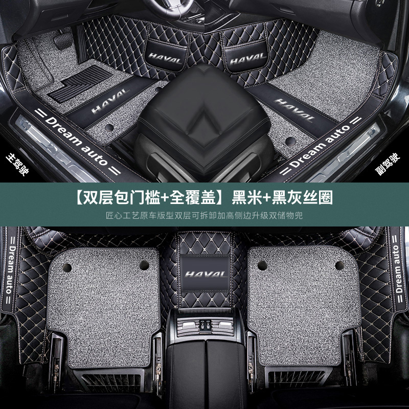 专用 于全包围汽车脚垫全新哈佛第三代哈弗h6 m6 f7x h2运动版f5 【黑米+黑灰双层】*送黑米防踢垫[2个]*送_槛条[4个]