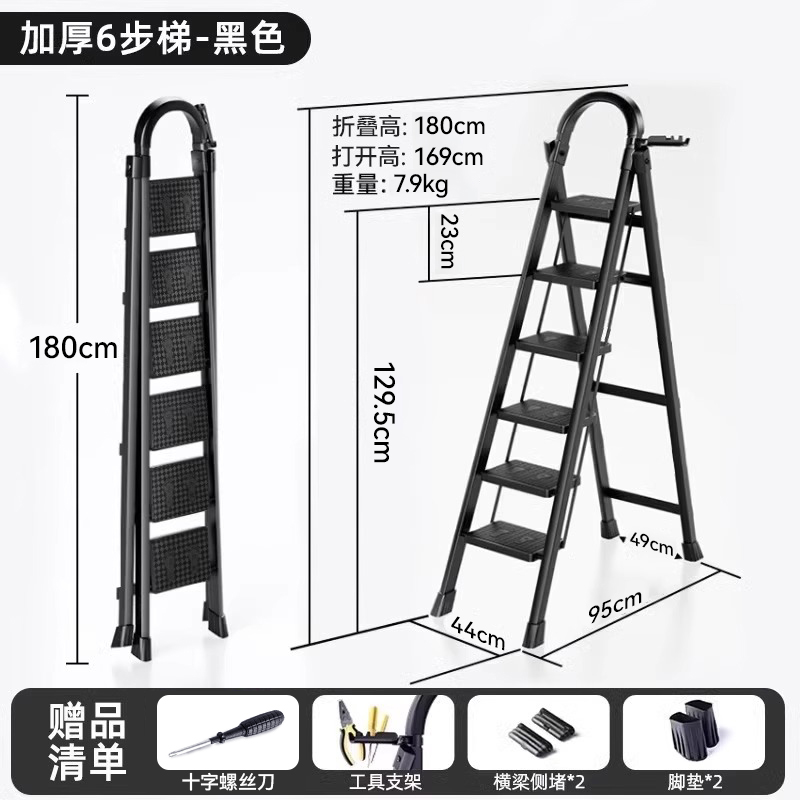 梯子家用折叠室内多功能人字梯步梯安全加厚伸缩小型便携四步1099 黑色加厚六步梯升级安全卡扣稳固不晃动