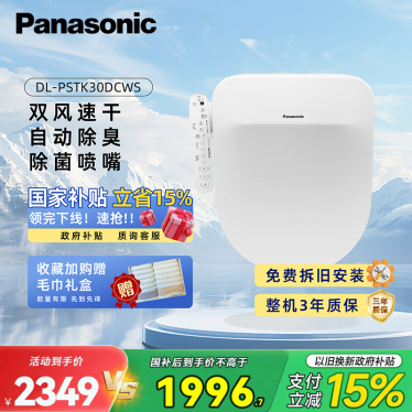 松下(Panasonic)智能马桶盖洁身器电子坐便盖即热DL-PSTK30DCWS 白色
