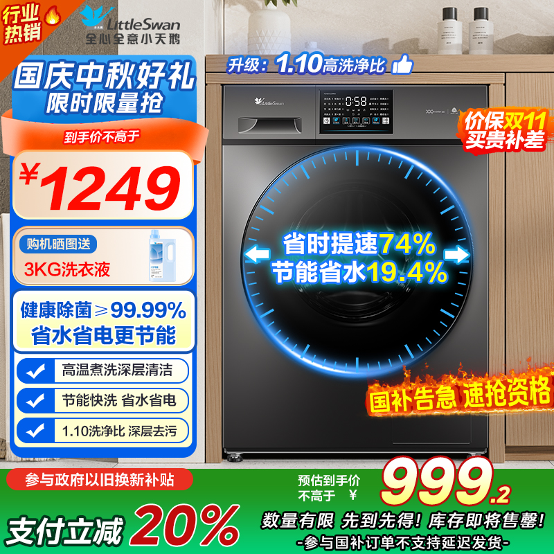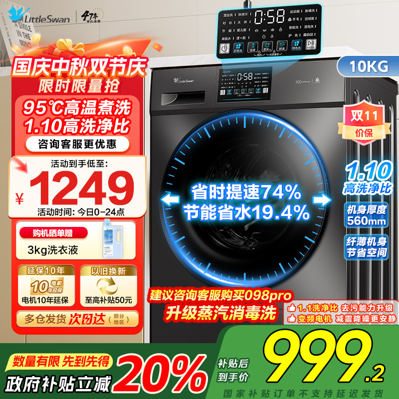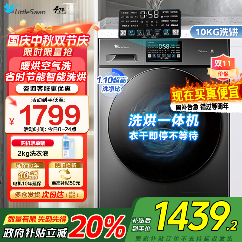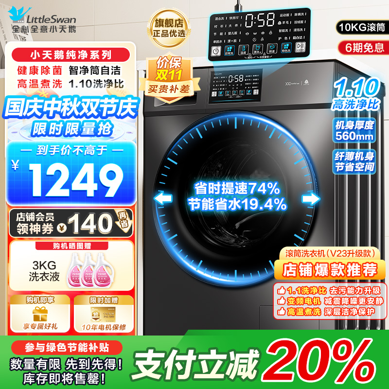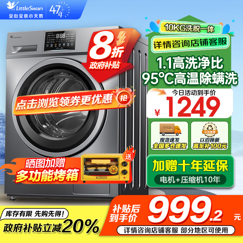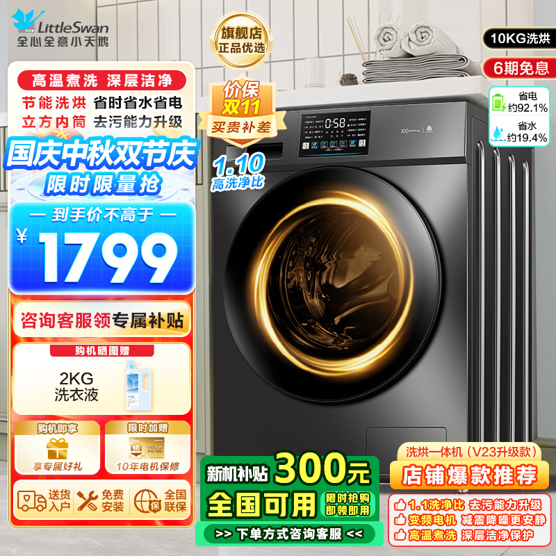 操作流程:方便简洁 外观材质:大气上档次 容量大小:10超大容量 在各个平台做了好多功课,**在苏宁**了这款10kgs的小天鹅滚筒洗衣机,真的买对了!它外观简约大气,摆在洗衣房很适配。洗得又快又干净,床单被罩、厚重冬衣都不在话下,10kg大容量一次搞定,还很省水。操作界面简单易懂,老人也能轻松上手,智能功能更是方便,下班前远程预约,到家就能直接晾晒。苏宁的服务也超贴心,配送快、安装专业,超满意!