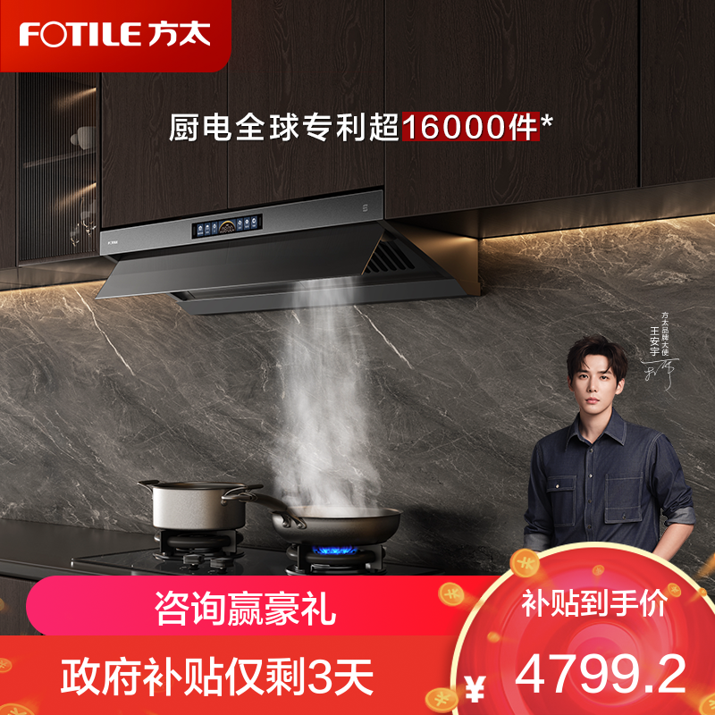方太(FOTILE)新品欧式吸油烟机家用27大风量挥手智控智感净味顶吸式环隐速吸油烟机F5