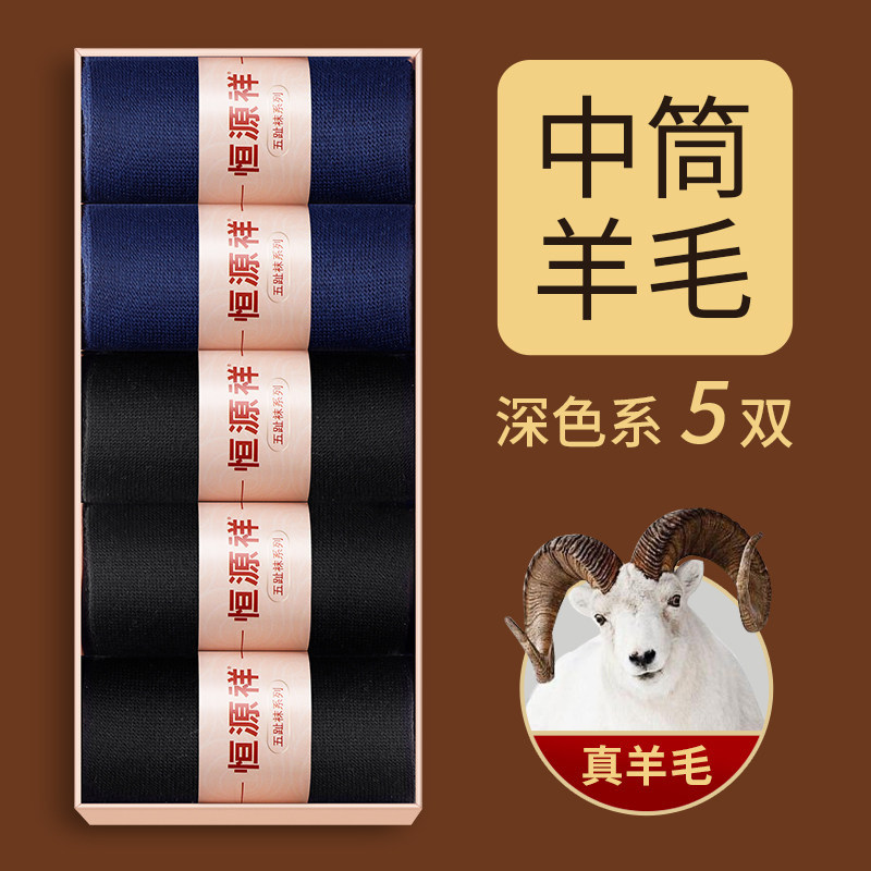 恒源祥五指袜男士袜子加厚中筒袜分趾脚趾袜秋季冬季棉袜_323 深色五双 【抗寒羊毛五指袜适合8℃-零下-25℃可穿】