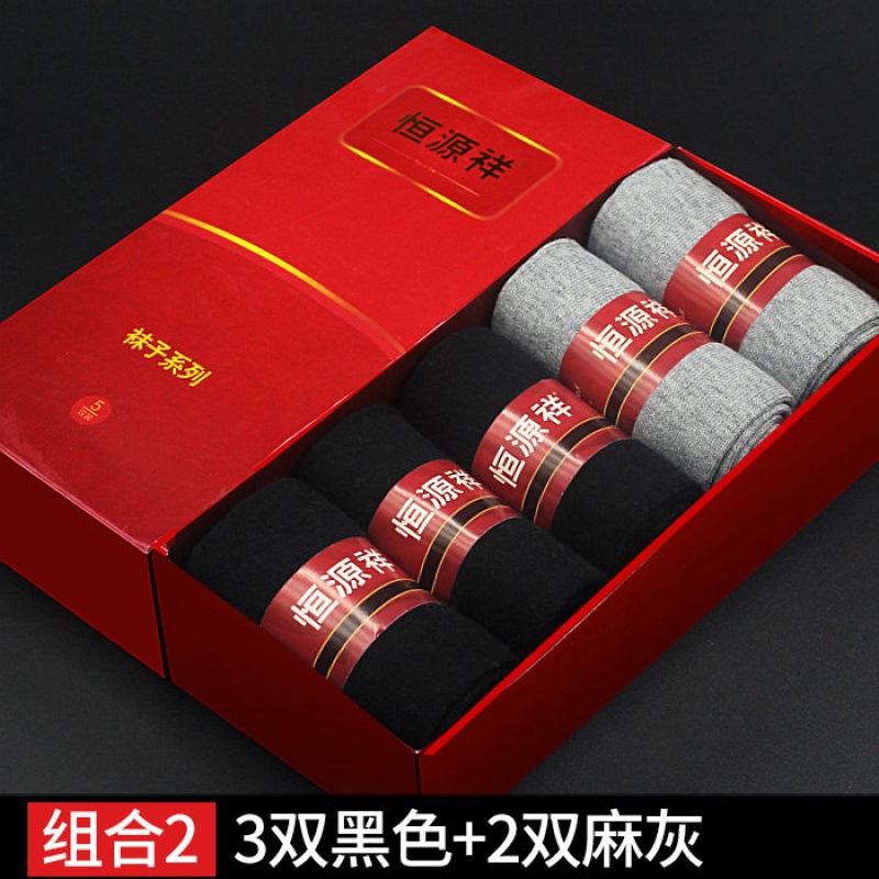 恒源祥棉五指袜男纯棉四季加厚袜中筒男士棉袜春秋中厚棉袜短袜_910 全棉五指袜,100%棉礼盒装 组合2:3黑2麻灰