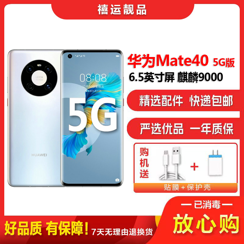 [二手9成新]华为Mate40 5G 秘银色 8G+128G全网通安卓手机6.5英寸屏麒麟9000E电信移动联通5G手机
