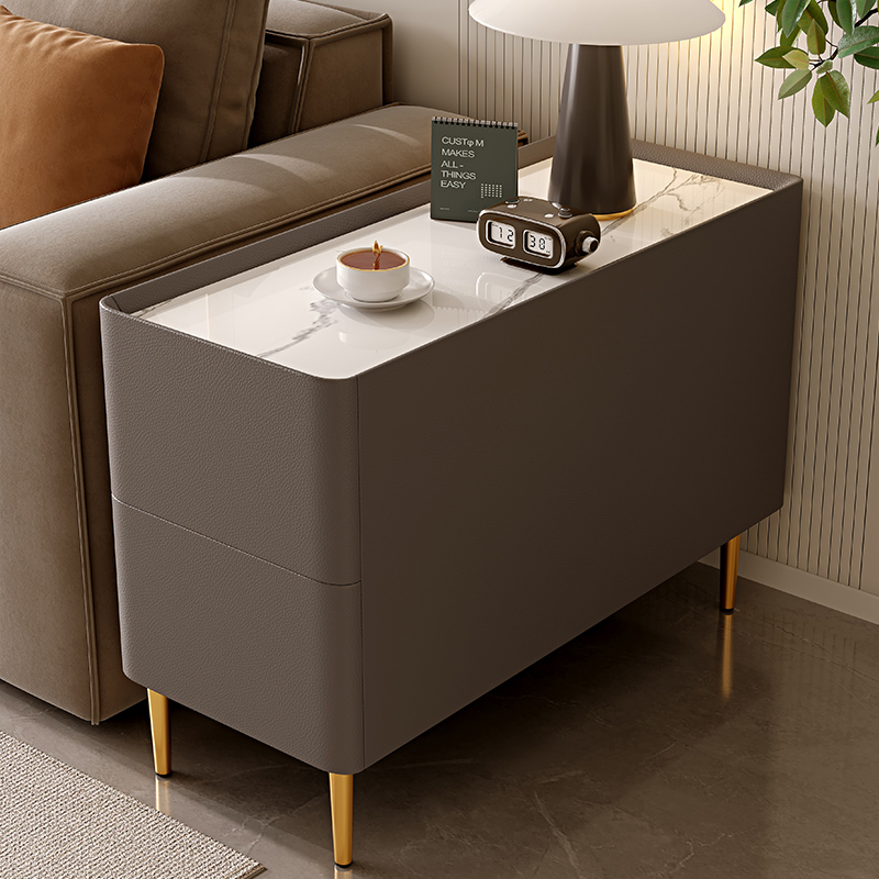 青木川 简约现代实木沙发边柜侧边柜轻奢岩板边几客厅家用角几简约现代茶水柜收纳储物柜夹缝柜超窄柜小茶桌角几 浅灰色 宽35x深80x高55厘米