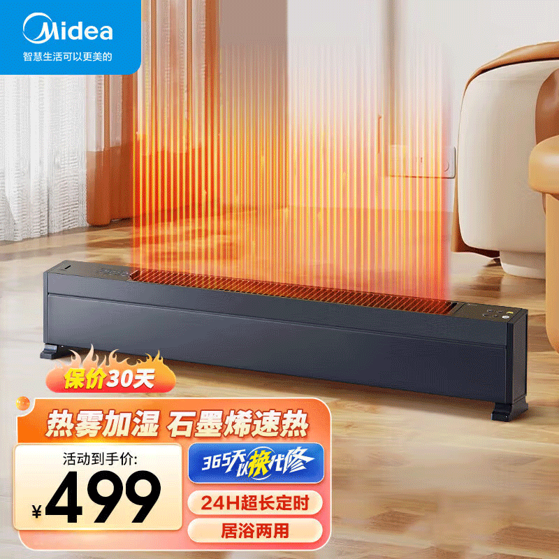 美的(Midea)石墨烯踢脚线取暖器家用电暖气浴室防水电暖器语音控制移动地暖客厅卧室全屋升温 NDT-QLR