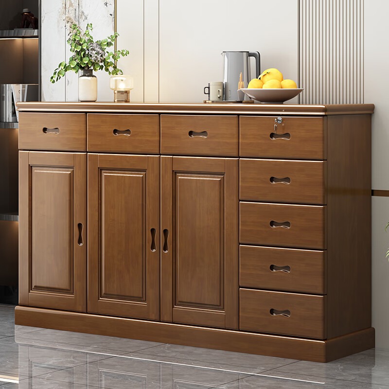 青木川 实木斗柜五斗柜多抽屉柜子落地客厅卧室床尾柜家用进门口鞋柜阳台入户门厅柜玄关柜矮柜带锁收纳储物柜 简约现代 胡桃色【160x40x100cm】