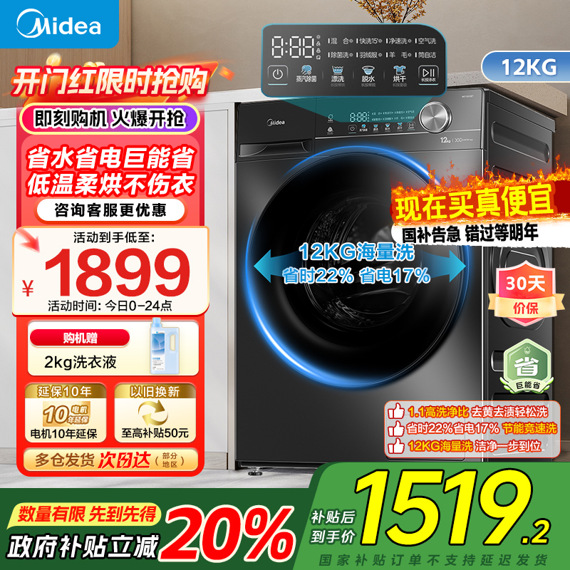 操作流程:操作方便,很好操作,使用起来没负担 外观材质:非常满意 容量大小:选择了12kg的大容量,洗衣服不用管转动时间,很方便,很不错 颜色是我喜欢的高级感美的是大品牌。师傅送到家里,安装师傅上门安装调试好。操作简单,很多操作选项。外壳坚固耐用。声音小,信得过