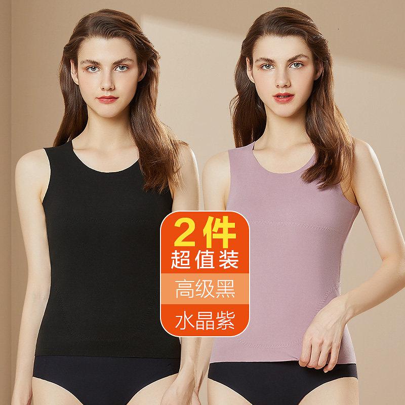 恒源祥保暖背心女德绒自发热内衣冬季紧身秋衣内穿无痕打底衫上衣_673 175/XXL 高级黑+水晶紫