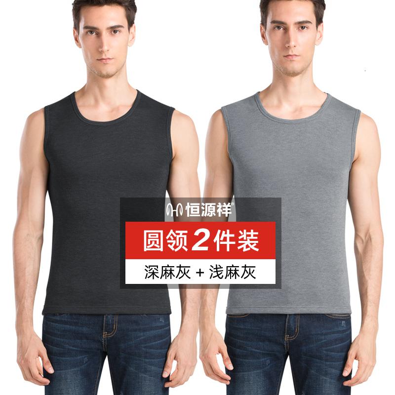 恒源祥男士德绒保暖背心加绒加厚无痕打底棉马甲内穿上衣秋冬季_867_927 175/XL 【圆领】深灰+浅灰